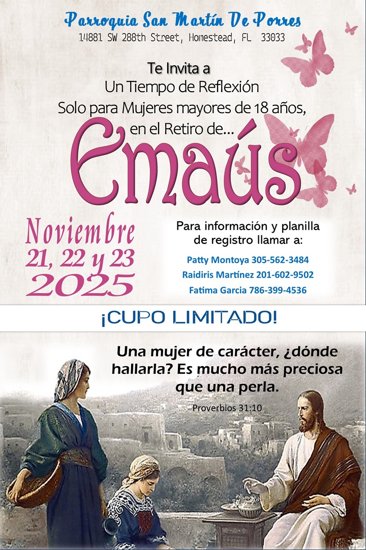 Next date: Nov 21, 2025 - click here for time schedule - Spanish