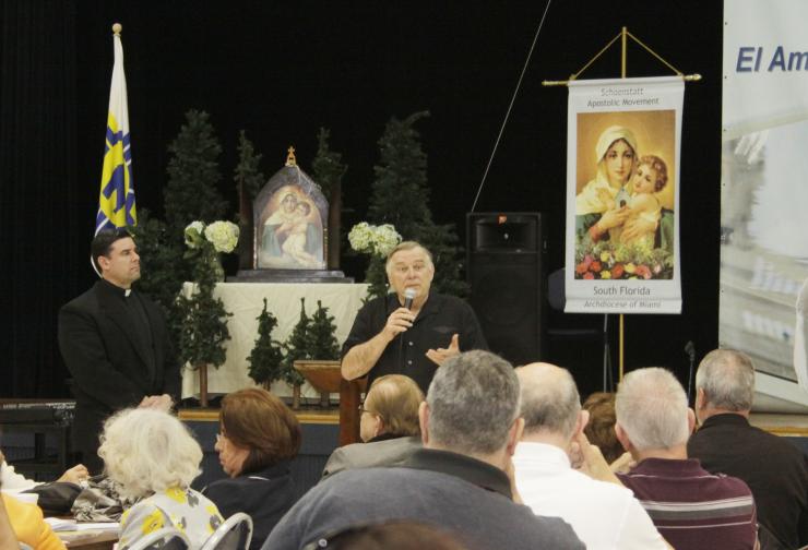 Piarist Father Rafael Capo, executive director of SEPI, spoke about the Evangelizing Mission of the Family during the first meeting of the Hispanic apostolic movements of the archdiocese, Dec. 6 at Immaculate Conception Church in Hialeah.
