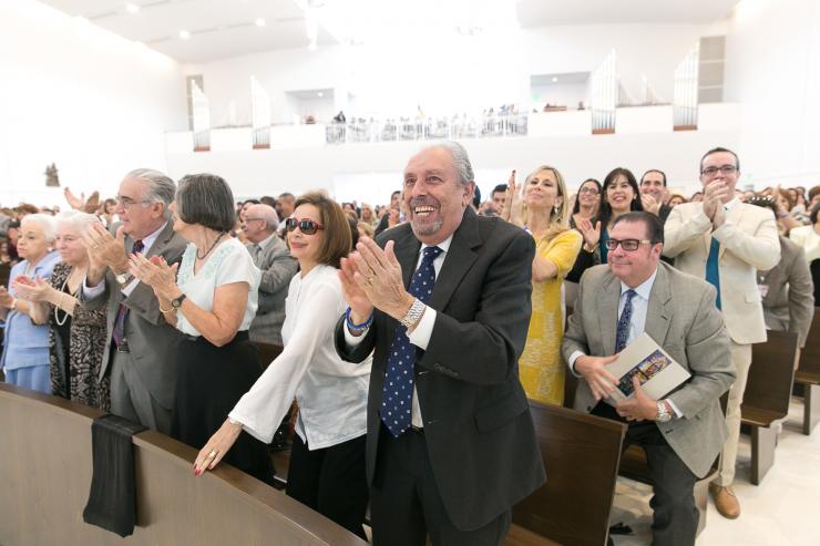 Parishioners applaud their pastor, Father Israel Mago, among them his mother, Margarita Mago, second from right.