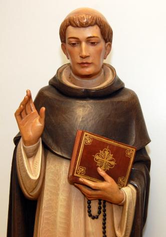 Youthful statuette of St. Dominic blesses visitors to the front office of St. Thomas Aquinas High School in Fort Lauderdale. Aquinas joined the Dominican order.