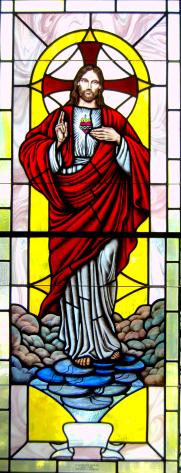 Sacred Heart window in the chapel of St. Thomas Aquinas High School, Fort Lauderdale. The Sacred Heart is a centuries-old symbol of the suffering Jesus endured for humanity.