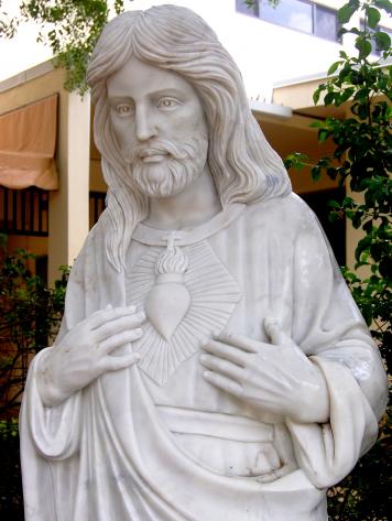 Statue of Jesus shows his Sacred Heart at St. Thomas Aquinas High School.