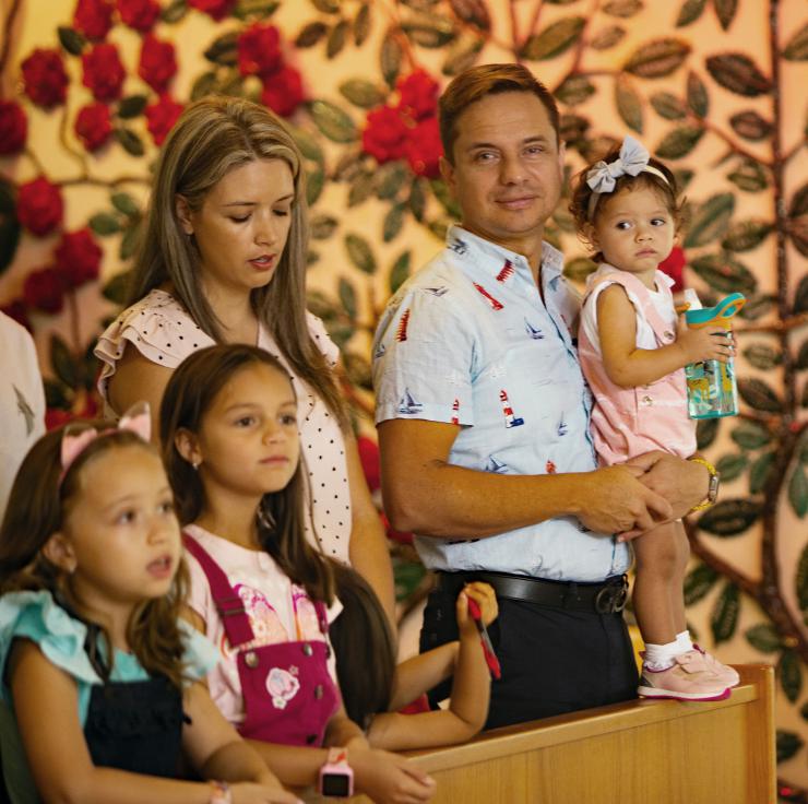 A young family takes part in the Mass closing the parish's 75th anniversary celebration, Oct. 15, 2023.