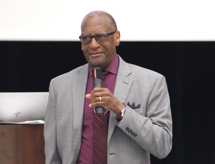Donald Edward, associate superintendent of Catholic schools for the Archdiocese of Miami, leads a session on establishing relationships during the New Teacher Orientation on August 4, 2025, held at Monsignor Edward Pace High in Miami Gardens.