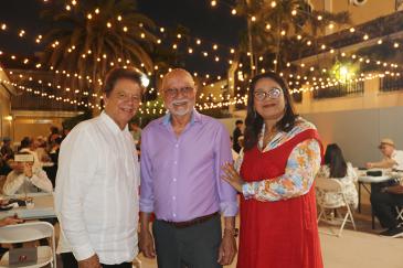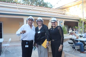 Enjoying Havana Nights are, from left, Peter Routsis-Arroyo, executive director of Catholic Charities of Miami; Alexis Céspedes, a retired employee of Catholic Charities and Maria Routsis, March 26, 2026, in the courtyard of St. Mary Cathedral in Miami.