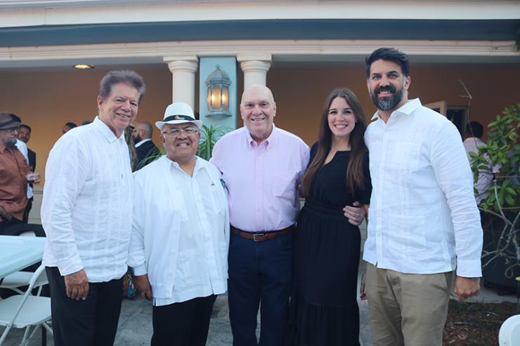 Enjoying Havana Nights, the annual fundraiser for Catholic Charities' Unaccompanied Minors Program at St. Mary Cathedral’s courtyard in Miami, March 26, pose for the picture, from left, Peter Routsis-Arroyo, executive director of Catholic Charities of Miami; Msgr. Roberto Garza, director of Radio Paz 830 AM; John Couriel, a board member of Catholic Charities; Lauren Pardo, deputy chief of staff, Office of Senator Rene Garcia and Anthony Pinto, senior director of Catholic Charities of Miami.