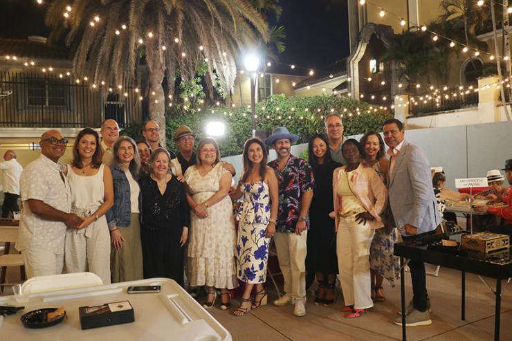 Some attendees at “Havana Nights,” a fundraising event for Catholic Charities’ Unaccompanied Minors Program, pose for a photo March 26, 2026, in the courtyard of St. Mary Cathedral in Miami.