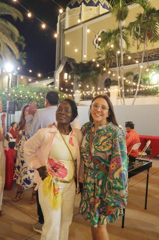St. Mary Cathedral School staff, from left, Suzie Pierre, religion teacher and Jocelyn Zlatkin, principal pose for a photo during the annual Havana Nights fundraiser for the Catholic Charities Unaccompanied Minors Program. The event was held March 26, 2026, in the courtyard of St. Mary Cathedral in Miami.