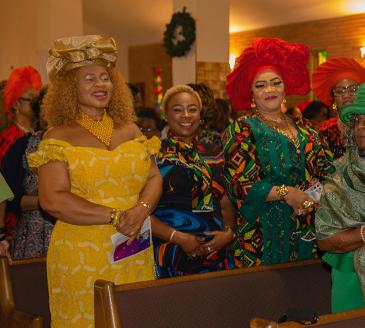 Nigerian ministry members stand during the 75th anniversary Mass of Holy Redeemer Church in Miami celebrated by Archbishop Thomas Wenski on Dec. 14, 2025. On the occasion, Father Emmanuel Essiet was installed as pastor.